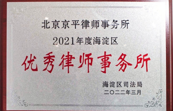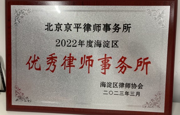 北京京平律師事務所榮獲2022年度海淀區(qū)“優(yōu)秀律師事務所”稱號